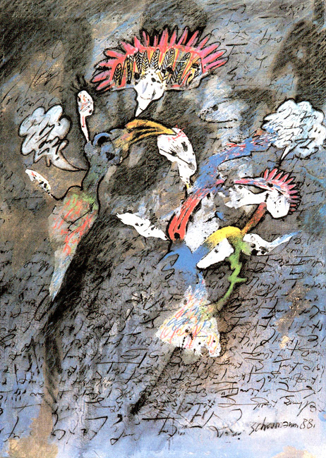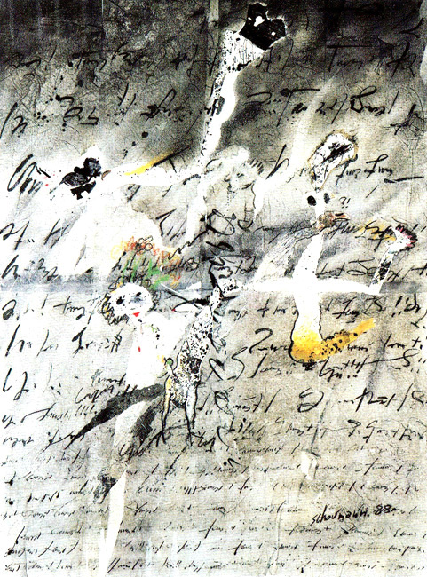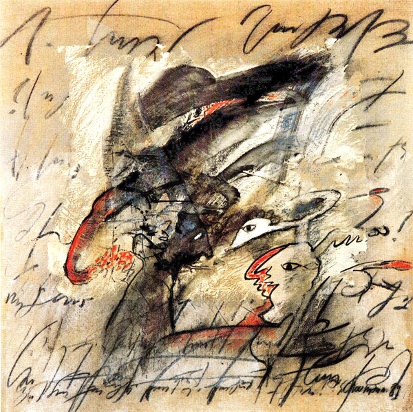 Ces toiles-là sont des graffitis humains-transparences-résurgences- couleur après couleur, souvenir du souvenir. L'atroce côtoie le tendre, sans forcer la note, sans élever le ton.